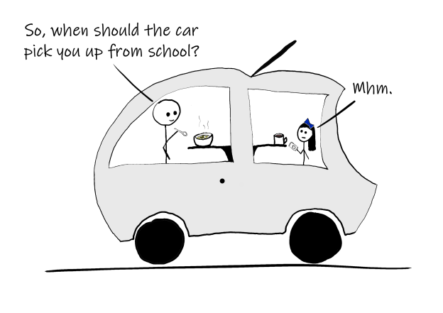 Imagine a future where you use an über-like app to call a driverless car to your doorstep. As soon as you enter the comfortable living-roomish cabin, your iPhone connects to the car’s entertainment system and starts playing your music or videos, and automatically adjusts your seat settings, as the car quietly whizzes off towards your destination. You catch up on the news and answer some work emails while en route to your office and your iTunes account automatically deducts the fare from your credit card. If you have a longer commute and would prefer to get some sleep, you can choose that option and have the car reconfigure to accommodate a comfortable bed. Unless you paid a premium, the car could find an optimal route to your destination, while also picking-up and dropping-off other commuters.